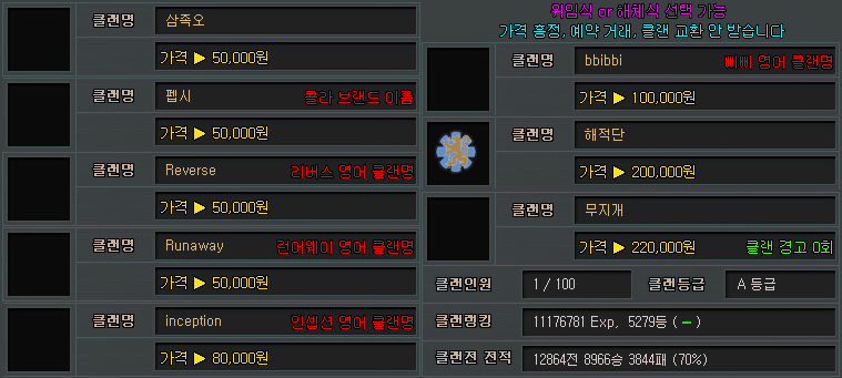 ███각종███클랜명███클랜마크███판매███