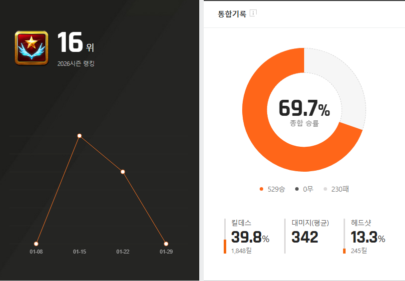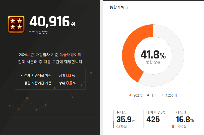 핵대리를 받아쳐먹으면서 랭크전을 해도 K/D 30퍼 쏘는거 보니 참 대단하다.