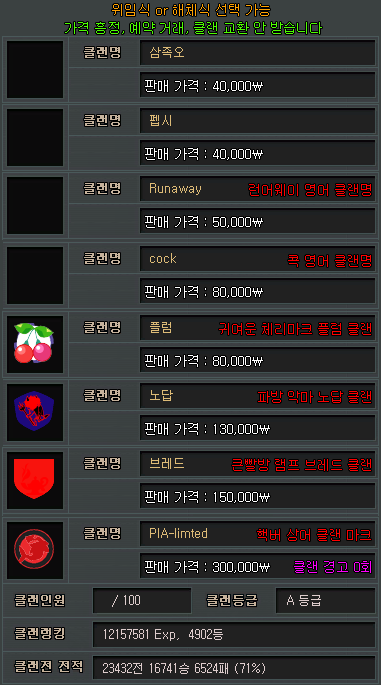 ✅클랜명✅클랜마크✅판매✅ ⚡최저가⚡