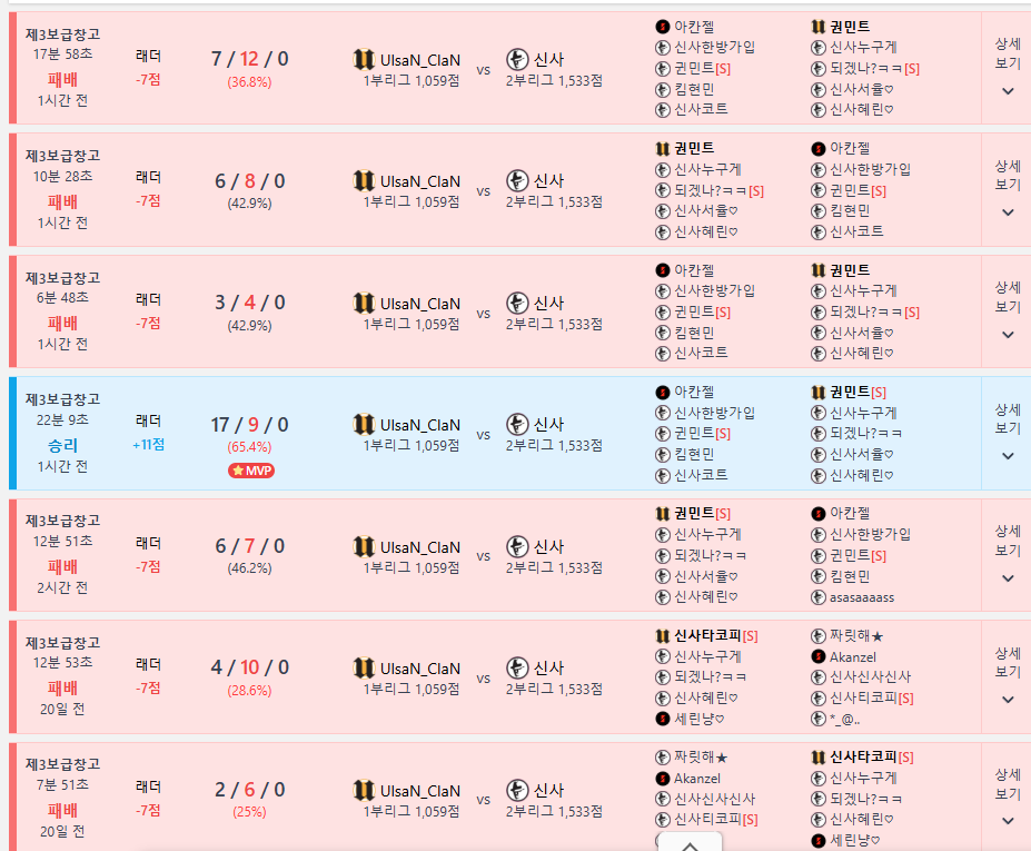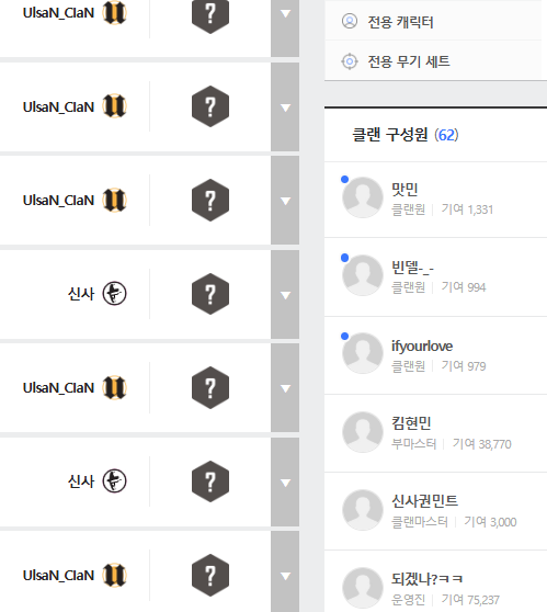 현재 울산클랜에 본캐를 넣어두고, 본인의 클랜을 주기적으로 승작 하고있습니다