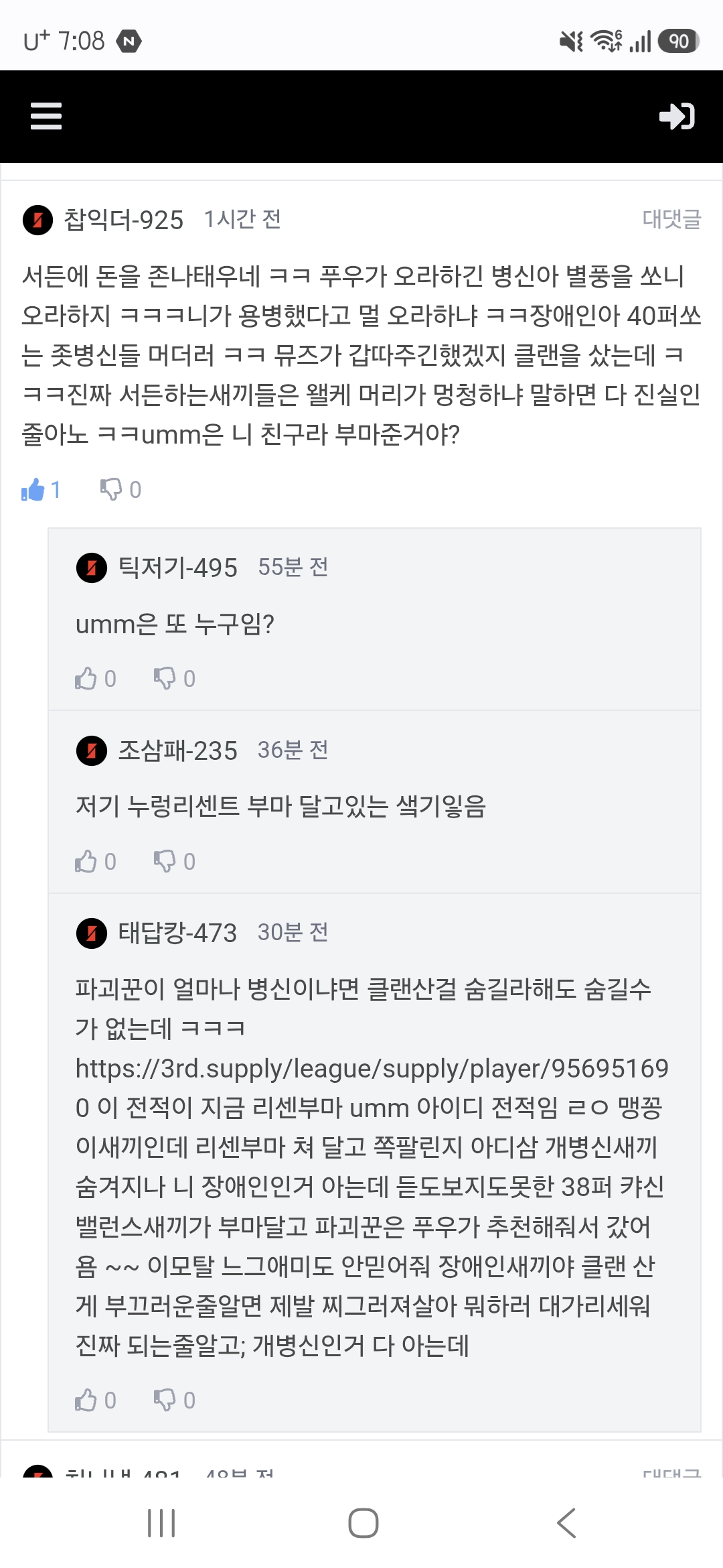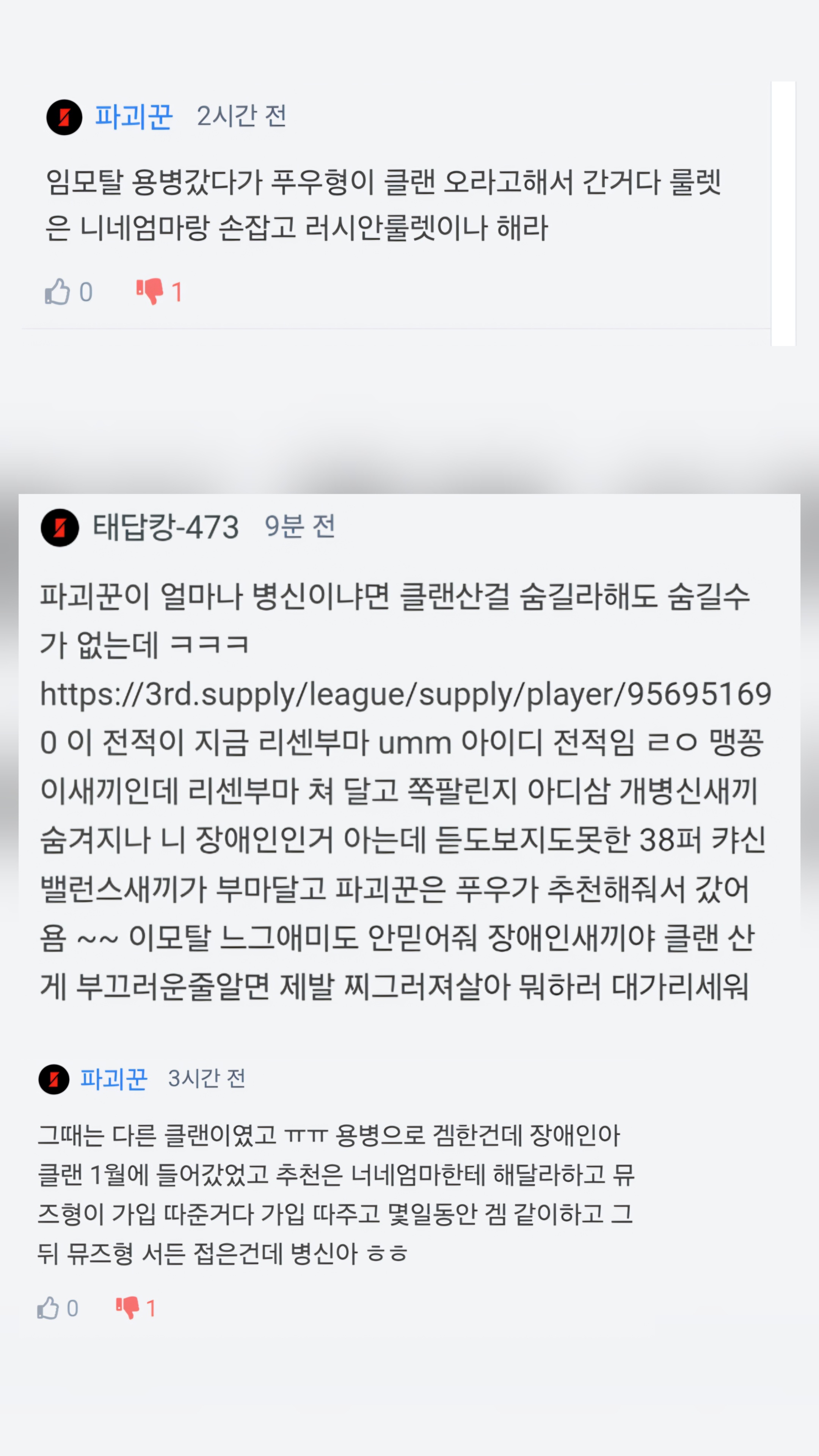 결론 파괴꾼 2부부터 작업장이고. 그런놈이 대장이고 현재 누런리센트 모든클랜원이 작업장 그중에서도 부마스터인 umm인가가 오른팔인데 이새낀 본캐가 39퍼 아이디버리고 기록있는 아이디사서 자기아이디인척 꼴에 부마라고 가오잡으면서 게임중 ㅋㅋㅋ
