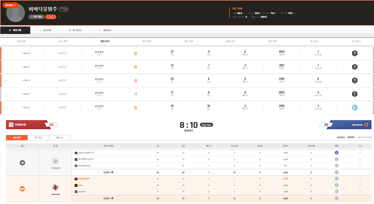 병영수첩 : https://barracks.sa.nexon.com/218756691/match