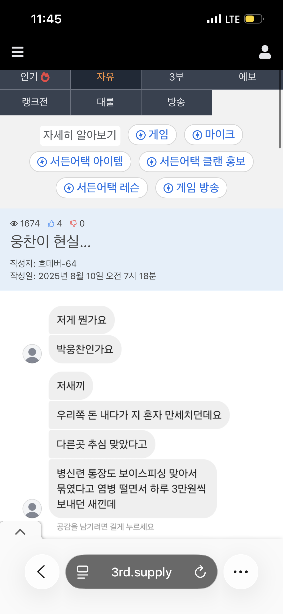 최근에도 사기치고 다니는 웅찬이..