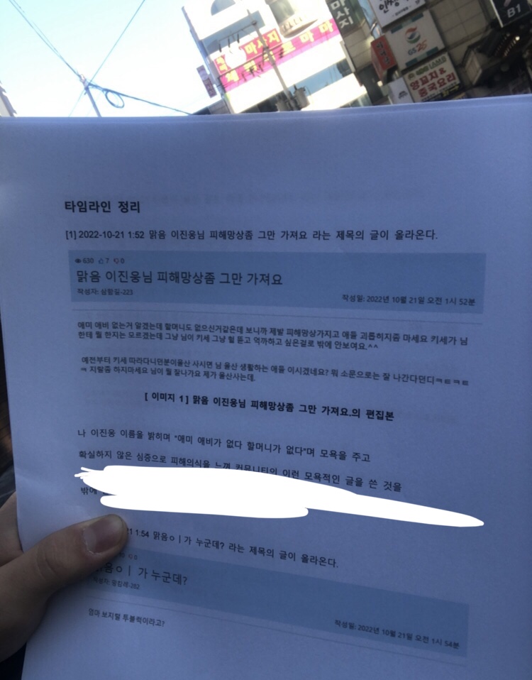 서플라이에서 맑음치면 님 이름도 다 나오고 서플라이 들어오는 사람들은 한번쯤은 실명 봤을테니까 고소는 될거같은데, 만약에 고소 하신다면 방송으로 특정할수있다는 주장보다는 위에말한 서플라이 게시글이 더 나을거같아요.  수익성을 목적으로 하시는 bj도 아니시고, 맑은님ㄹ 알긴하지만 방송을 한번도 본적도없고 닉네임도 모르는사람도 많을거라서, 모욕이 서플라이라는 사이트에서 시작됐으면  특정성을 서플라이에 맑음님이 쓰신글로 주장하는게 더 좋을듯 합니다