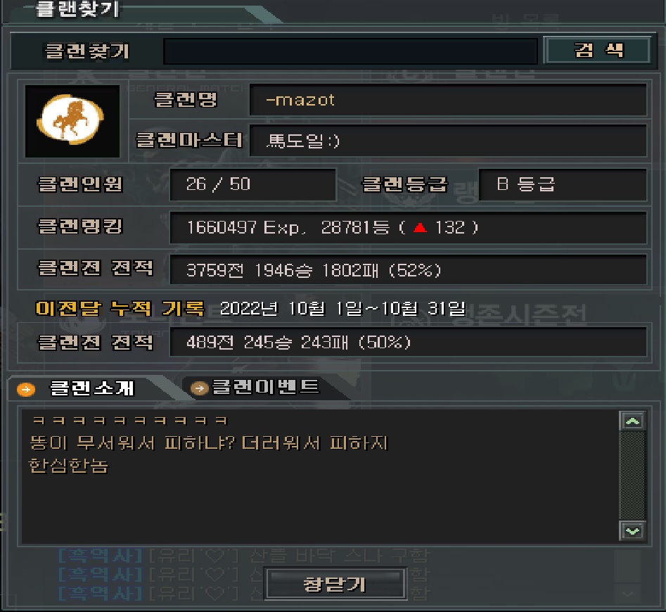 성배씨한테 빨리 가서 클랜명마크사서 바꾸세요 죶양민들아 ^_^@@ㅋ