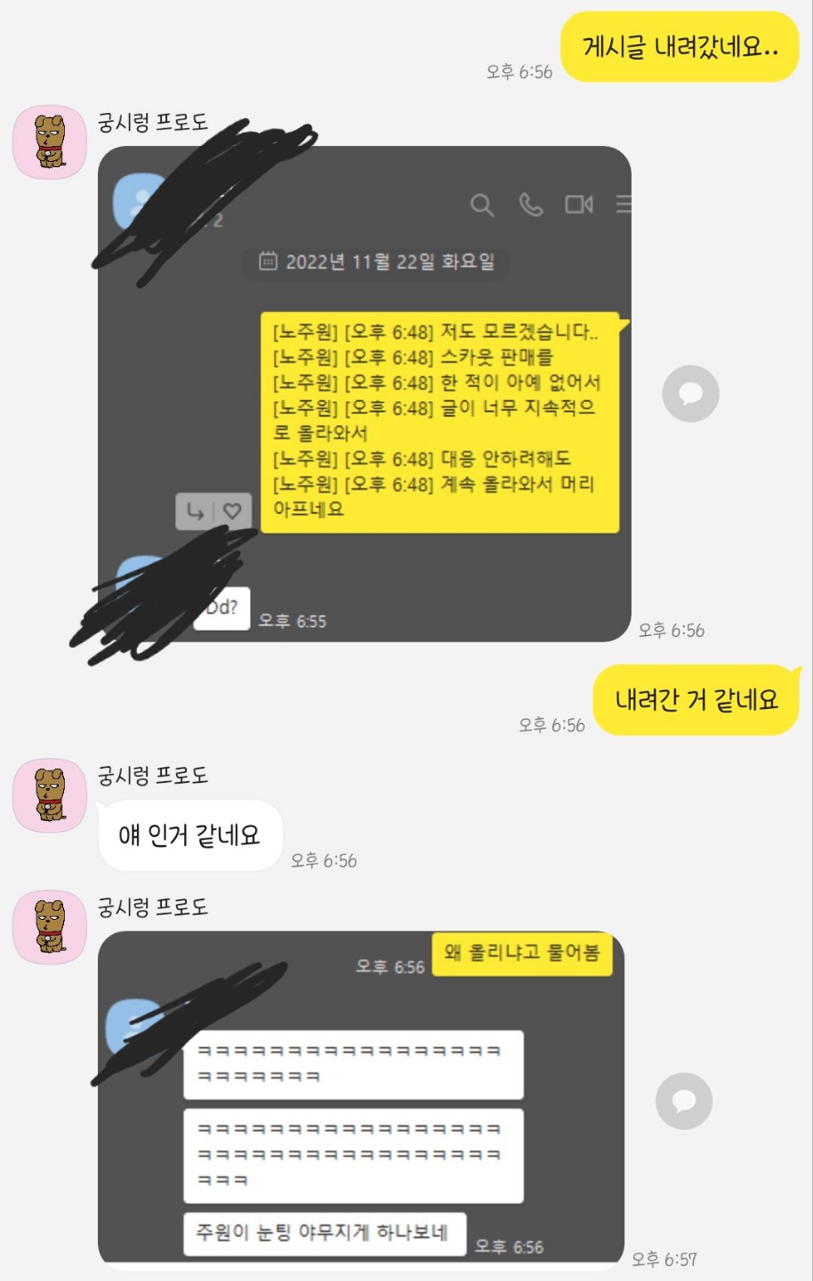 계속 글 올라오는 거 무시 했는데, 이렇게 내려간 게시글 마져 캡쳐해서 올리시고 많이 속상해서 댓글 답니다.