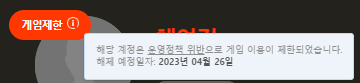 정지당하기 며칠 전 부터 꾸준히 리즌이 게임을 해왔던것이 확인이 되는데