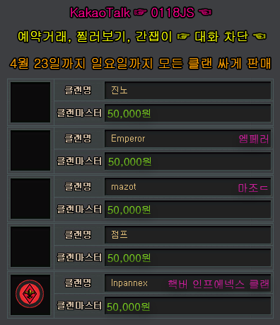 23일까지 클랜 각각 5에 싸게 판매