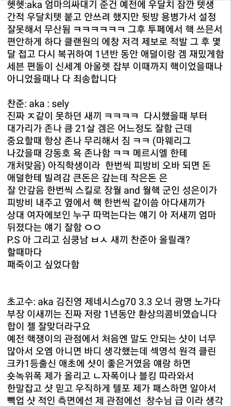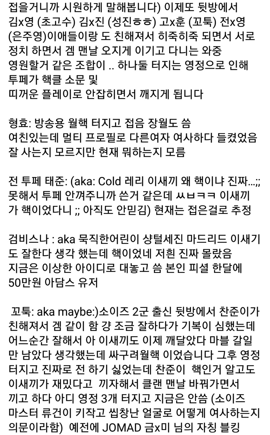 뒤에서 숨어서 욕 존나 하고다니고 앞에선 착한척하고 투페 애들 앞세워서 욕받이 시키고