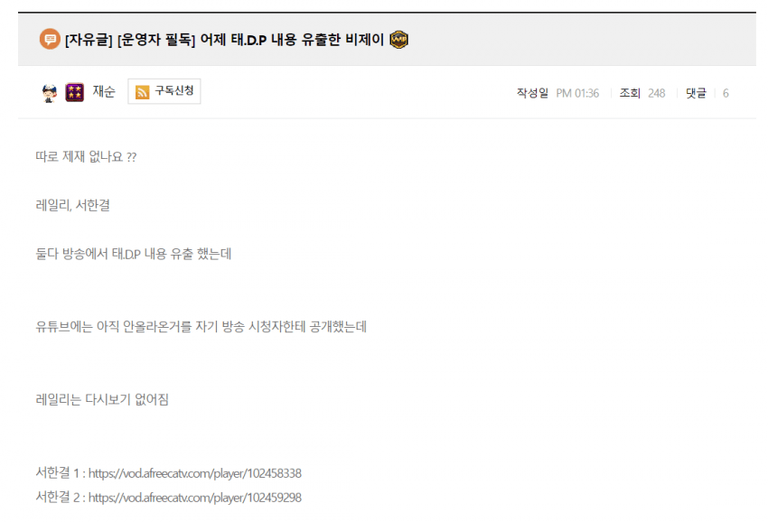같은 유저끼리 패치내용을 먼저아는 bj가잇냐?