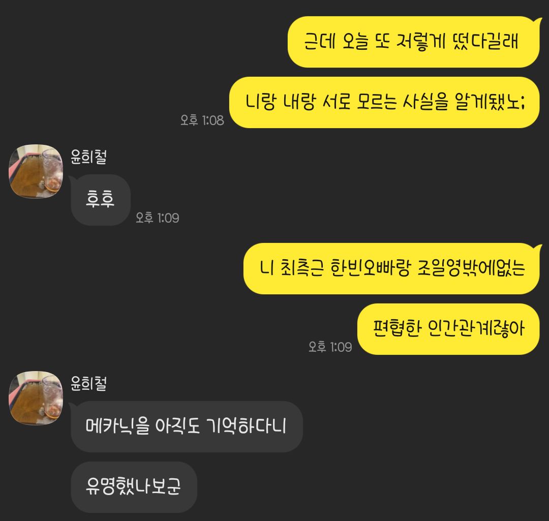 통수고 지랄이고 믿음이고 신뢰고 이딴게 문제가 아니라 윤희철은 타인에 대한 감정공감능력이 전혀 없어서 그딴 말을 안한다는거  놀랍게도 타인에 대한 감각이 무던한 애라서 그딴거 없다는거ㅋㅋ