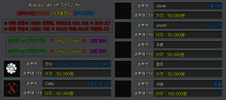 클랜 구매문의 카카오톡 SAS2