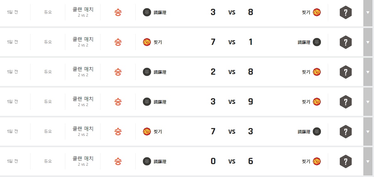원포인트 클랜도 찢기클랜이랑 동일하게 동일한 한곳클랜과 부정하게 게임하셧네요 ^^