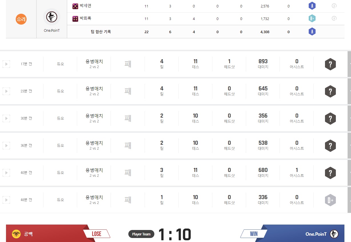 넌 평범한게임 2대2클전 5-6분만에 연속으로 7판을 가능하다 생각해 ㅋ?