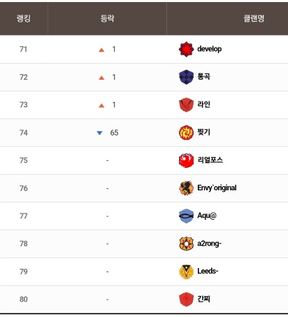 그동안 몇년동안 1등 랭킹유지하시느라 고생하셧어요 클랜원 한명 잘못받으셔서 랭킹 내려가시겟네요~