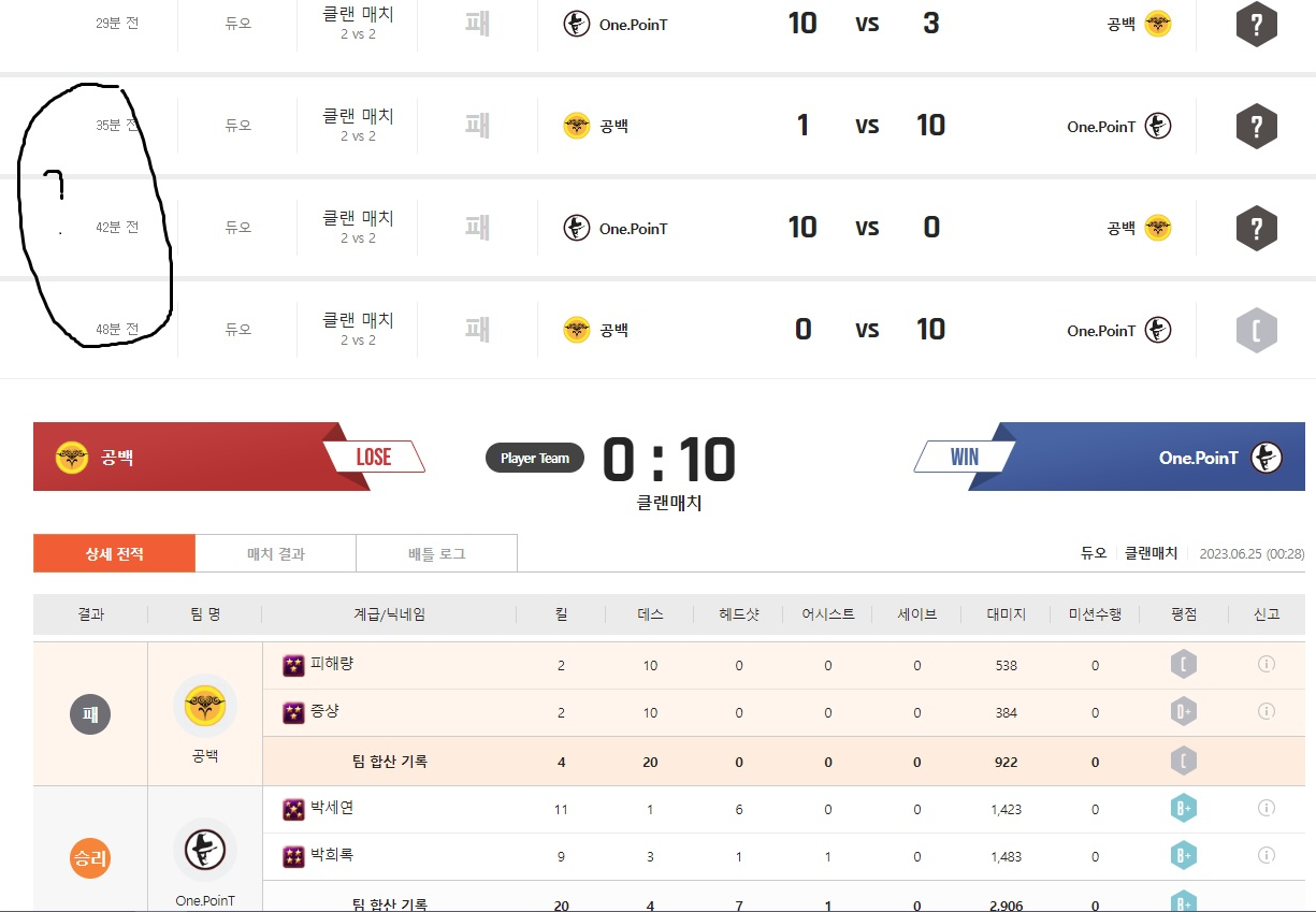 https://barracks.sa.nexon.com/939889635/match - 박세연 7판 연속 어뷰징먹은 부원수