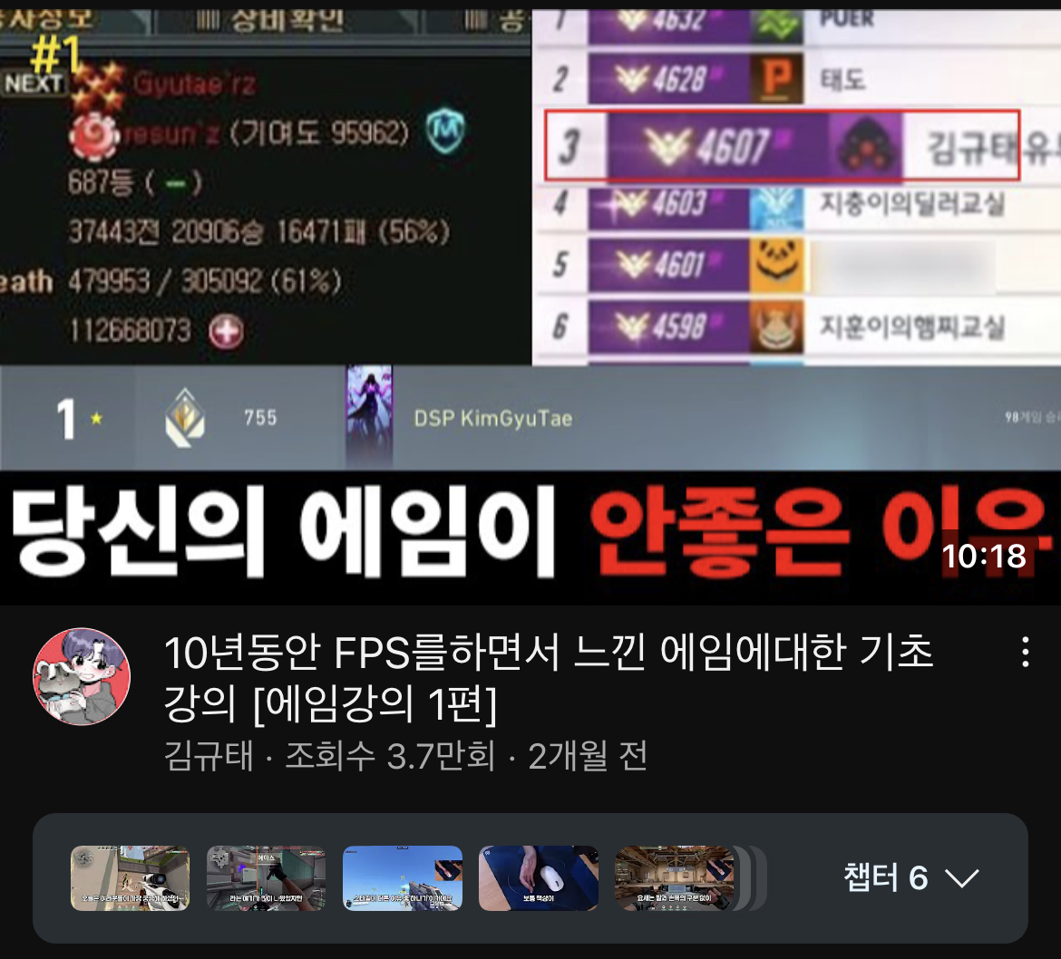 발로란트 100등권인데요 김규태님 dsp소속 아시아 랭커로 발로에서 유명합니다 서든에선 쭈구리인거 맞는데 발로에선 달라요 님들아..
