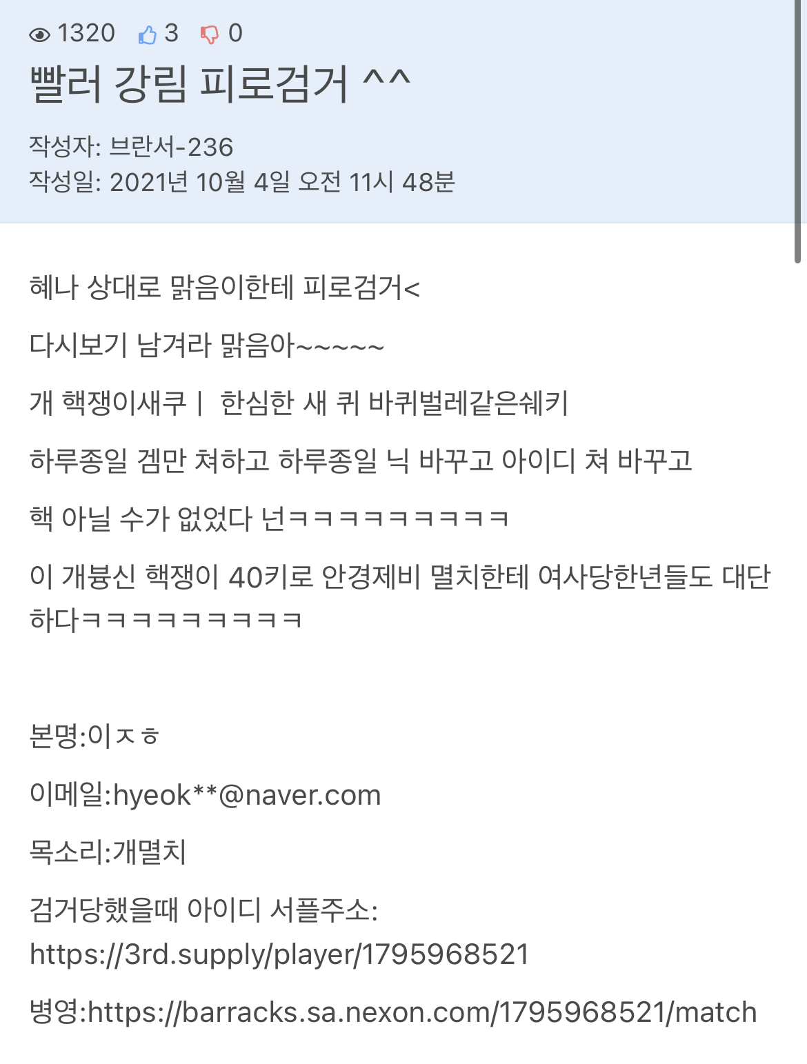 검거당했을때 아이디 서플주소: https://3rd.supply/player/1795968521
