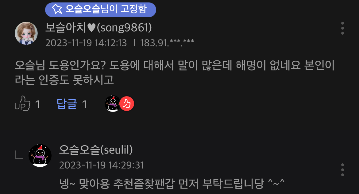 응 근데 저 답이 응 나 도용맞아~ 이뜻인지 걍 무시하려고 네 맞아용 한건지 몰라 ㅋㅋㅋ