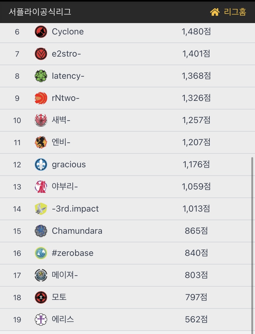 아이보리즈 / 에리스 / 플랜디 / 아이보리즈 / 에리스 이 순서로 바뀐거다 병신들아 결론은 아이보리즈가 에리스고 에리스가 아이보리즈다 십멍청이들아 그러고 리브가 7등 원래 파벳 이라는 클랜이였는데 그냥 등수 높은걸로 에리스 이사 간거야 리브가 클마고