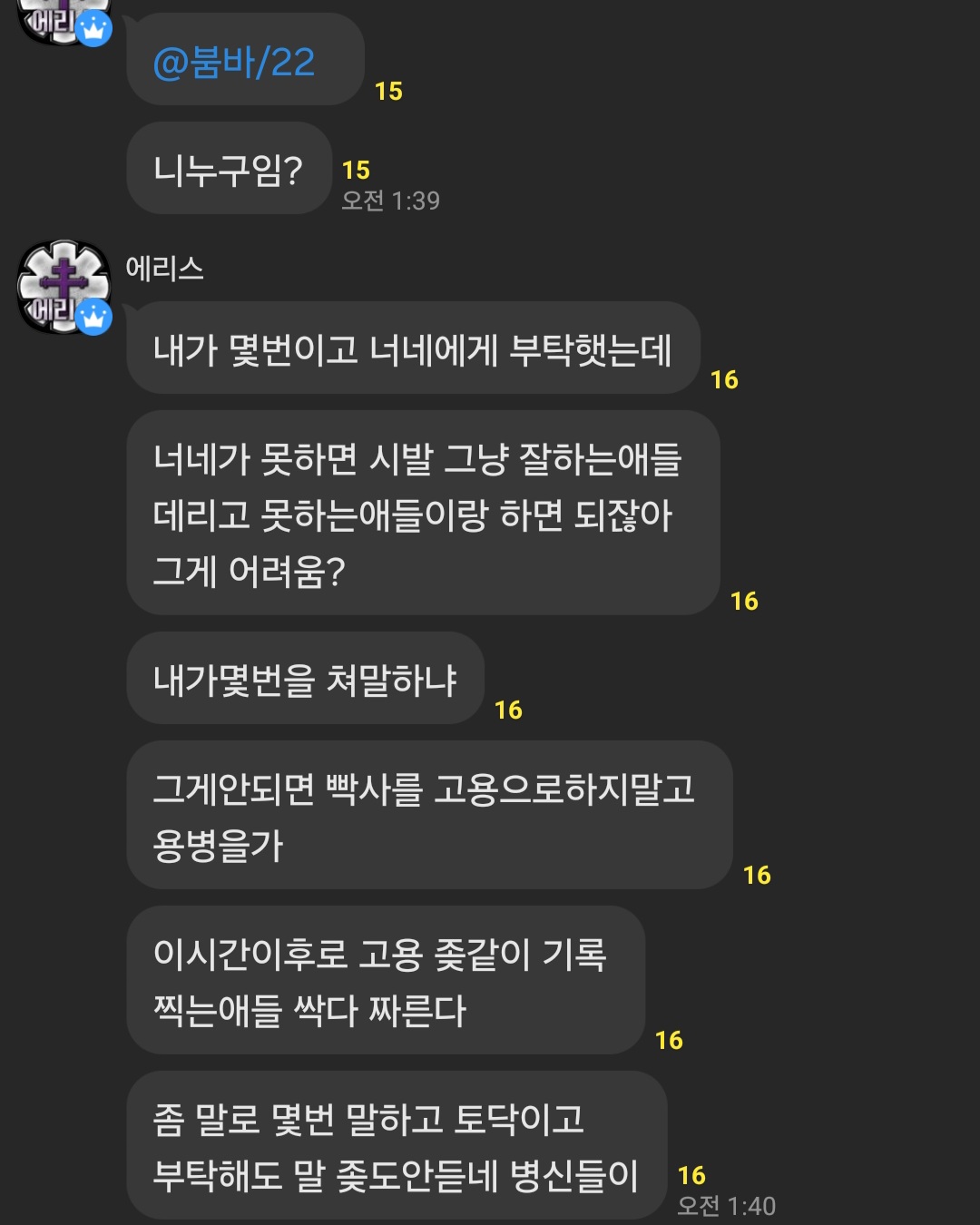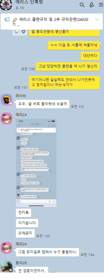 단톡방 올리는 놈도 인간쓰레기지만 저런 쓰레기클랜에서 기록관리하는게 웃기네 1부도 그렇다 썬즈 피로 힝 멘토르