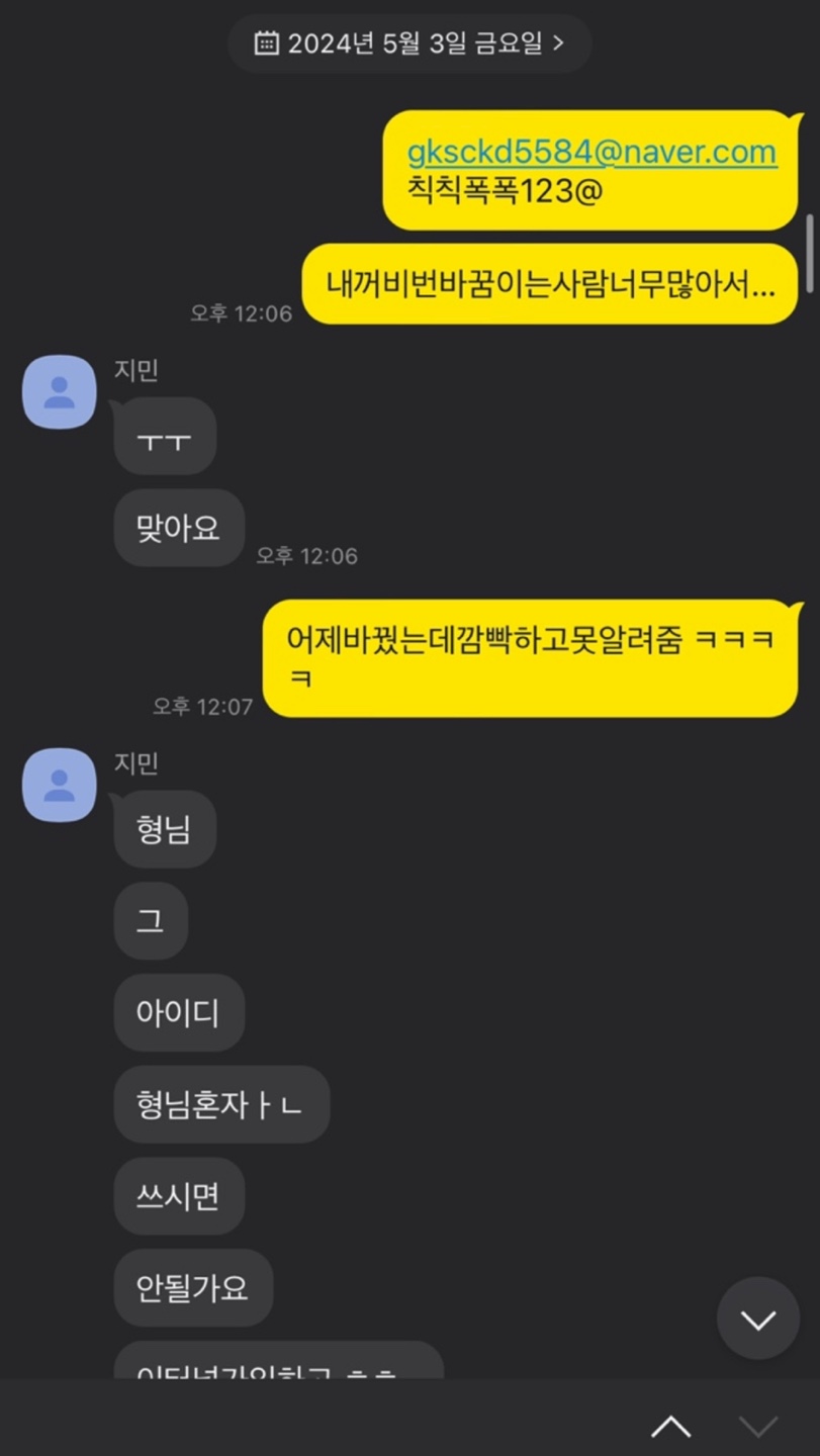 내꺼 비번바꿈 아는사람 너무 많아서 라는 맥락