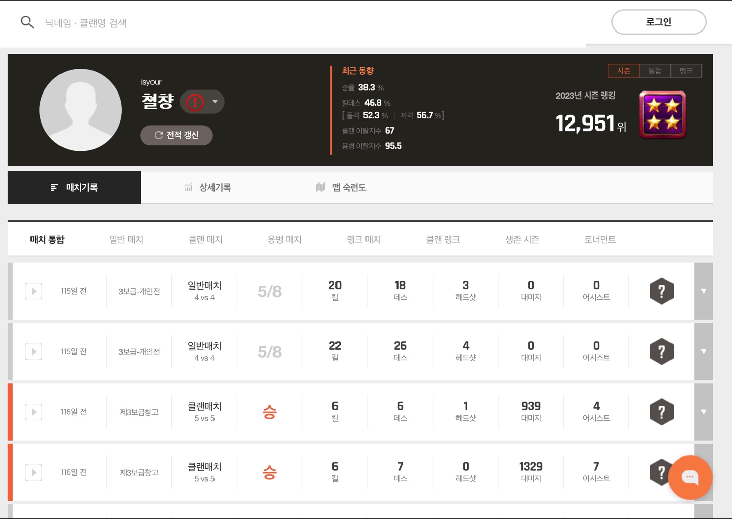 23.1.12일에 제명한 클랜원입니다 누구처럼 배같은 형제라고 끼고 안해요