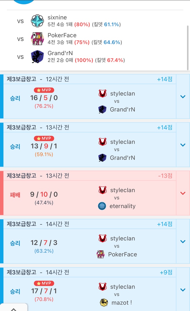 57전 44승 개지리네 ㅋㅋㅋㅋㅋㅋ 랭크전 오프인증 해라잉