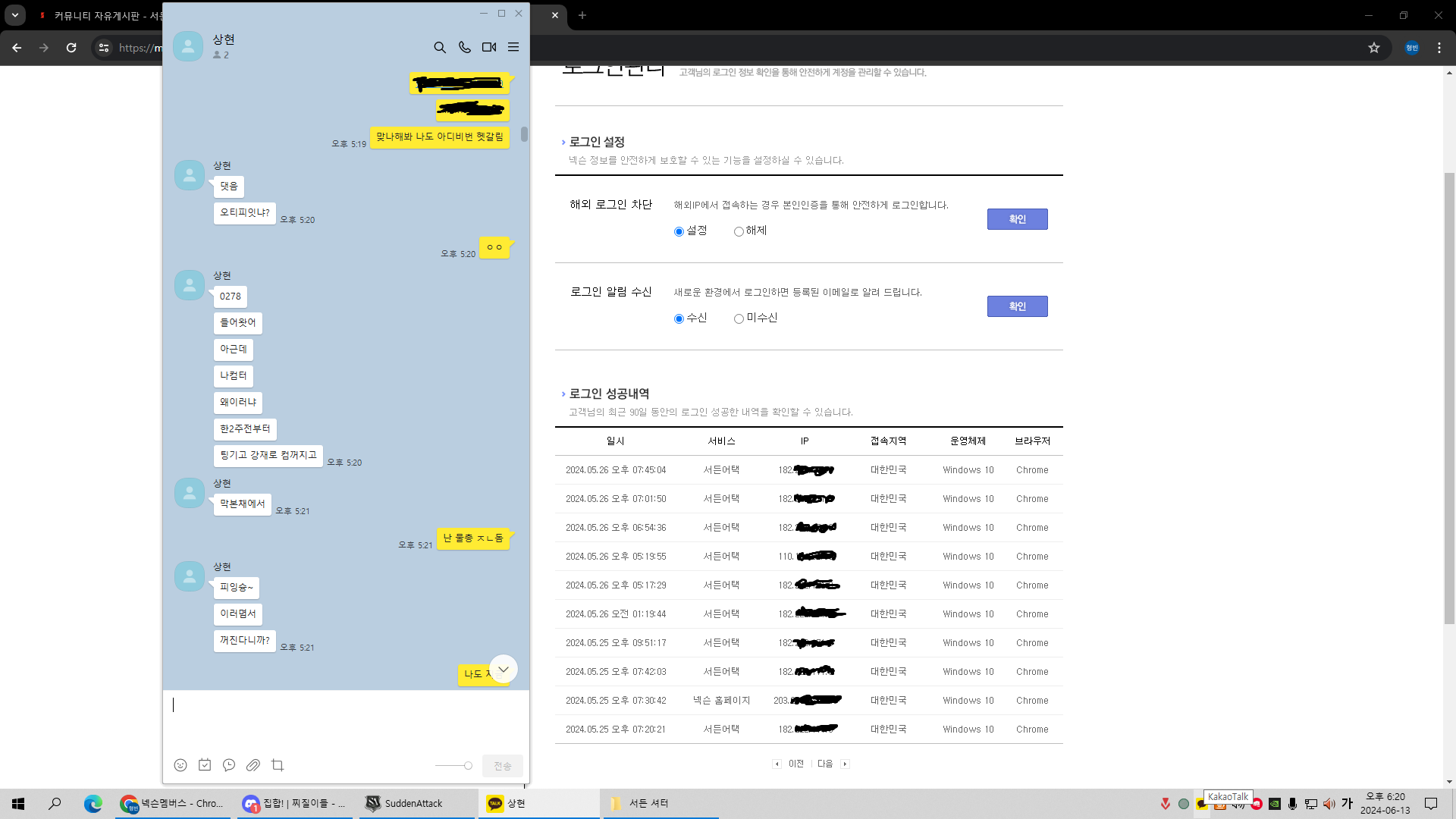 카톡했던내용이랑 그당시 아이피 사진입니다.