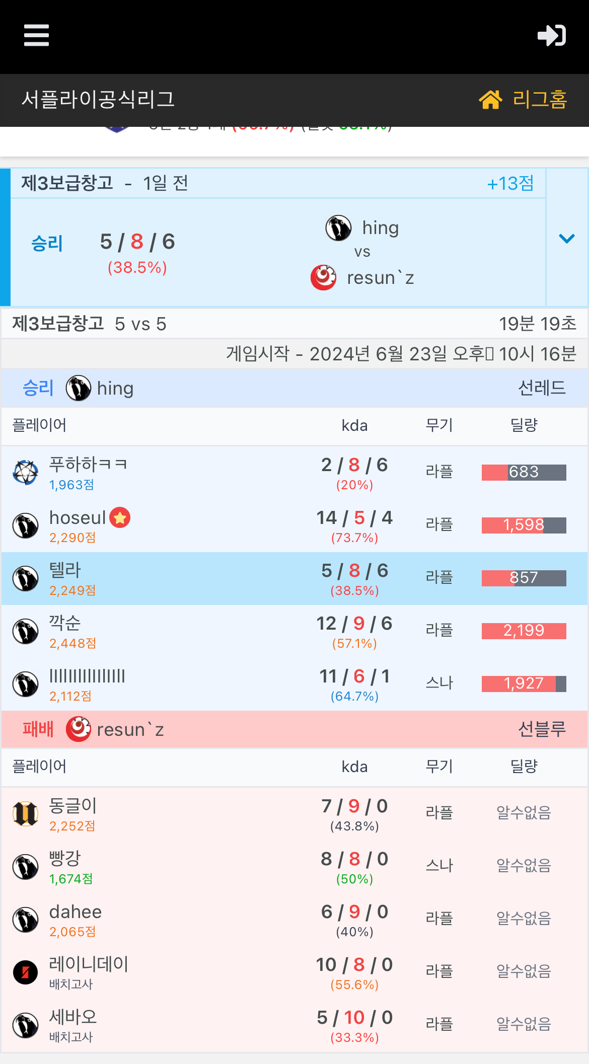 ㅋㅋ 상대가 힝이 아니었으면 애쉬랑 다 부캐로 왔을 거 같음? 지네도 전적관리하려고 부캐로 왔거나 대달라고 해서 왔거나 둘 중 하나지 ㅋㅋ