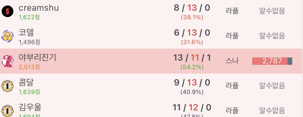 야부리는 1부 올라가야할듯 2부딱들이랑 급이 안맞음 ㅋ