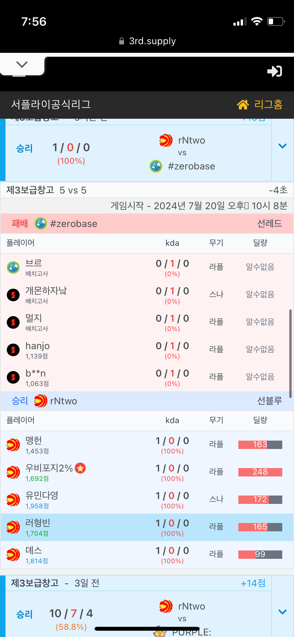 rNtwo클랜이 #zerobase 승작 10번 먹었습니다 관리자 김진혁님 보세요