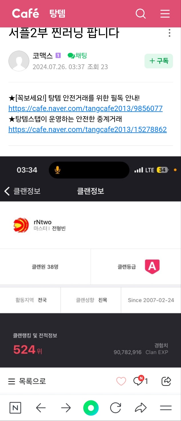 팔지도 않는 클랜 쳐올려서 어떻게든 내려보려고 ㅋㅋ