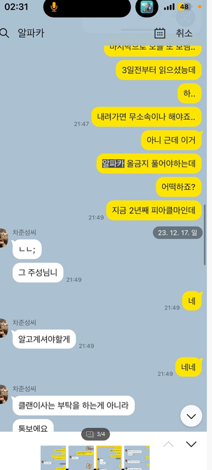 이부분에 있어 엪구 풀영상 부분까지 현재 20명남은 클마님들 단톡방에 원본 그대로 올린 상황입니다.