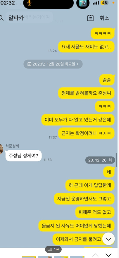 뭐 이제와서 목소리가 모른다 몰랐다 하진 않겠죠? 2주전까지 카톡하고 금지유저가 클마단톡방에 있는걸 방관하신분이?