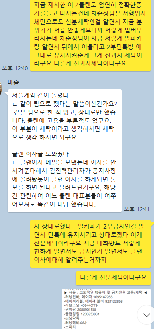 위에 내용을 보시면 마설님은 피아 로꼬 알파카인걸 알면서도 같이 2부 단톡방 마스터 모임에 있었고