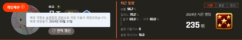 니 뽀요한테 씨게 긁혔냐??? 길로틴정지로 좋아하누