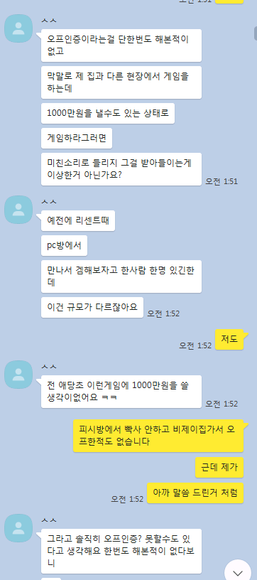 1000만원을 걸지 않겠다는 것은 ‘내가 집에서만 게임을 해봤기 때문에 익숙하지 않은 환경에서는 자신이 없어서’입니다.