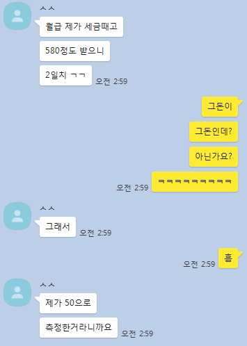 50만원을 받아야 오프를 나간다는게 말이 안되는 조건이라 생각합니다.