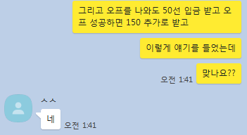 즉, 오프 성공 여부와 상관없이 50만원을 챙기려는 의도로 보입니다.