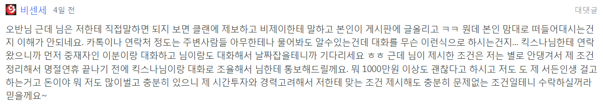 그러나 센세님의 댓글은 마치 "돈을 벌 만큼 벌었으니 1000만원 오프빵은 빼지 않겠다"라는 뉘앙스로 들렸습니다.