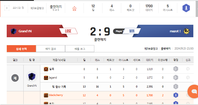 저는 그 날 게임 자체를 하지 않았고, 아는 동생이(워터wct)