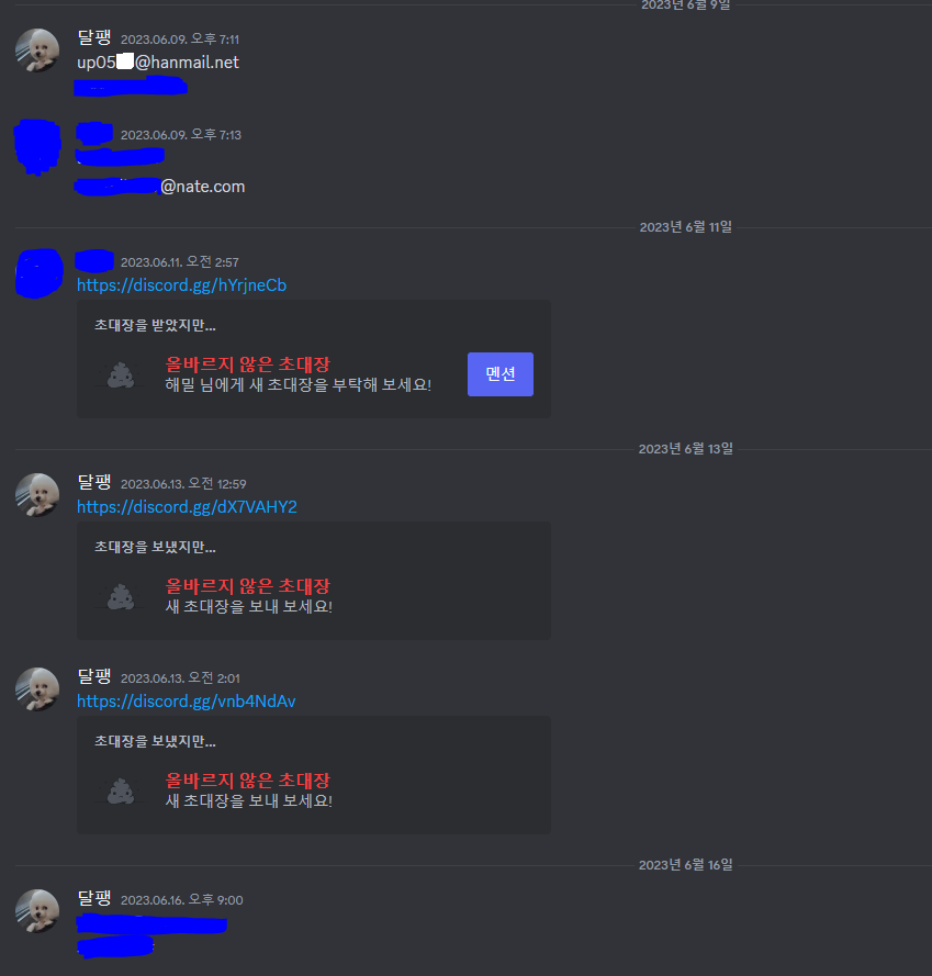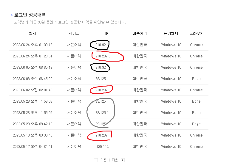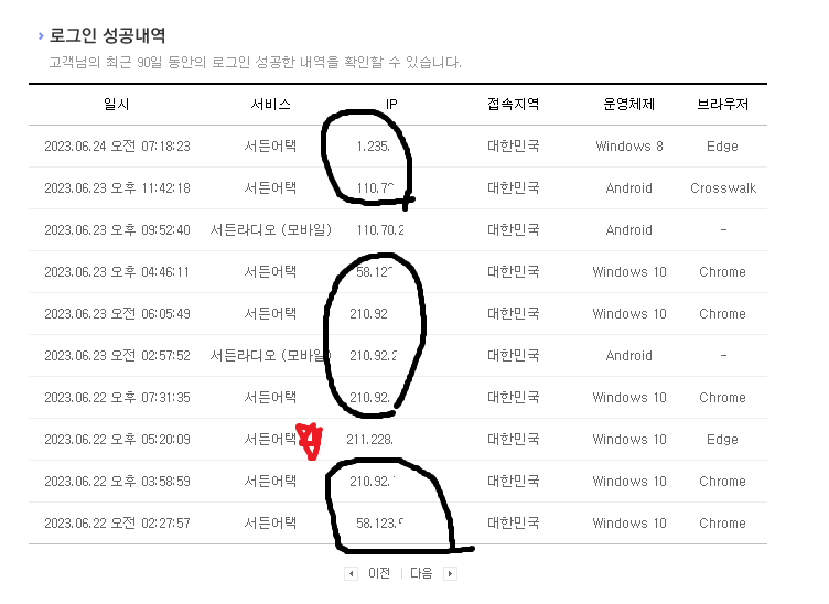본인 집아이피거나 저계정도 지인한테 받은계정