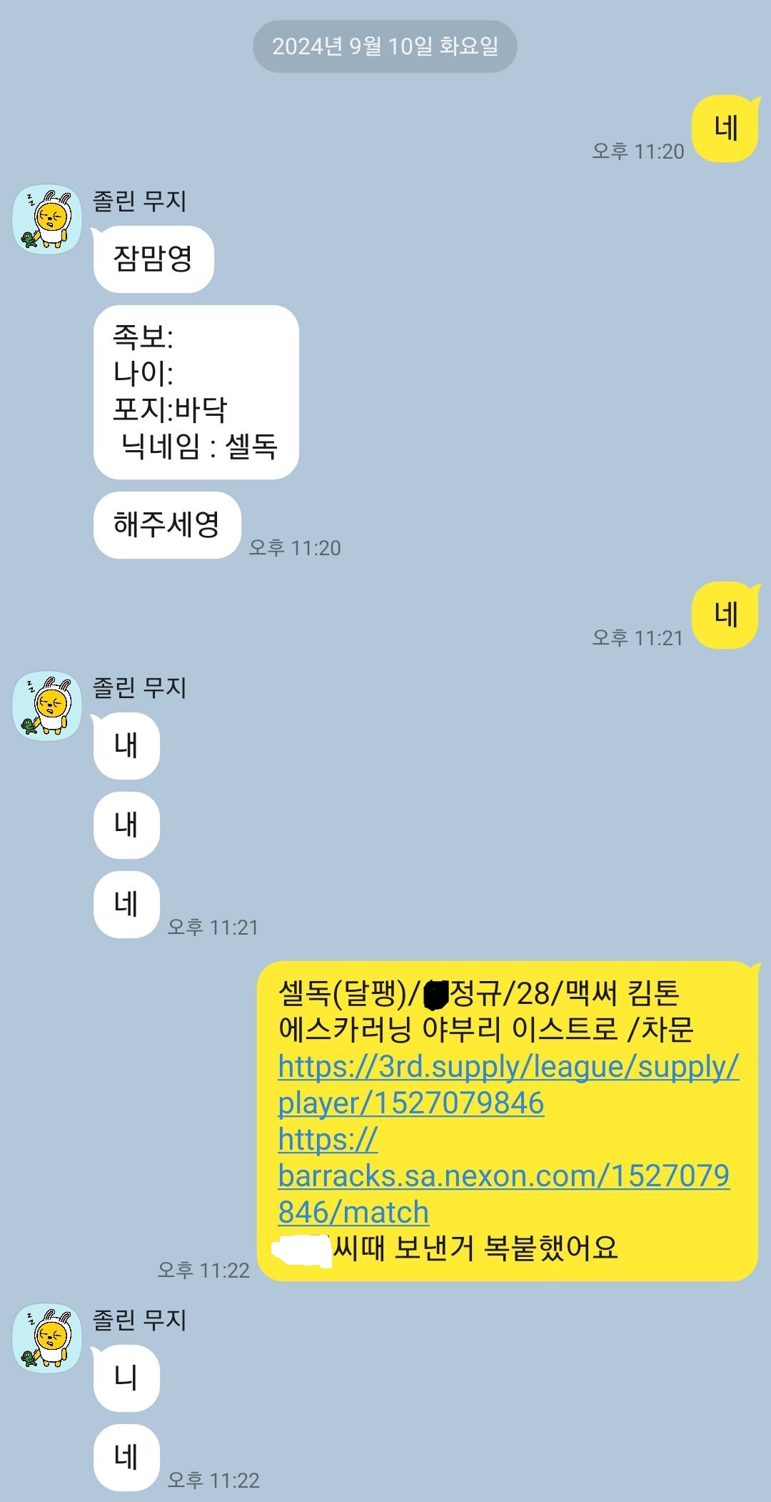 그후에도 빡사나 상대방에서 누구인지 원래닉 물어보면 알려드렸으며 셀독은 그냥