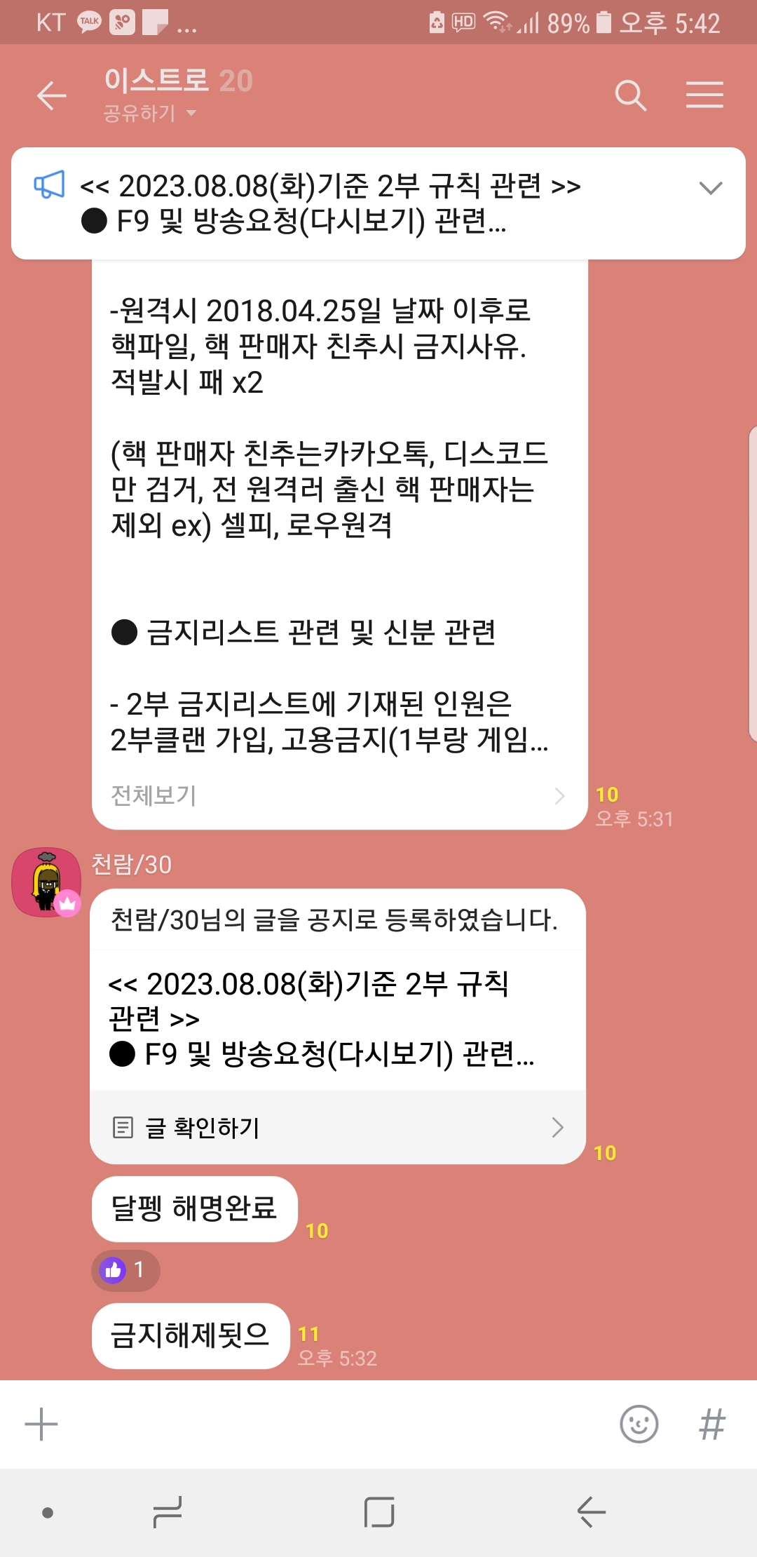 영적 먹었을때도 2부단톡에 해명하여 투표올려져서 해명하고 금지가 풀렸으며