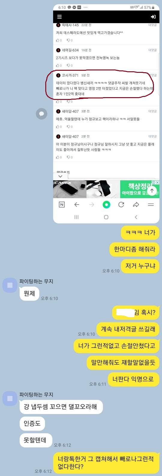 데이터 껐다켰다 병신새끼 ㅋㅋㅋㅋ 댓글주작 씨발 개쳐웃기네