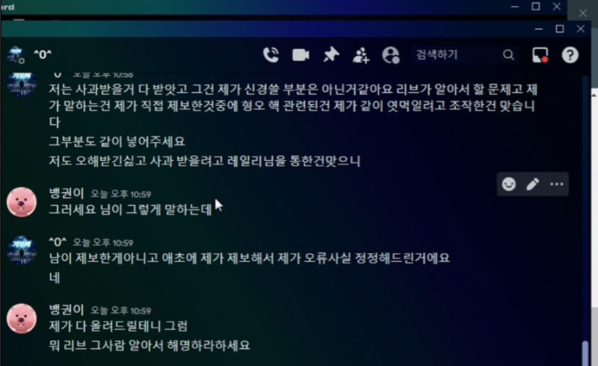 그리고 나서 제보자는 내가 나타나서 따로 개인적인걸 해결하고 사과를 하라고 계속 주장하였고,