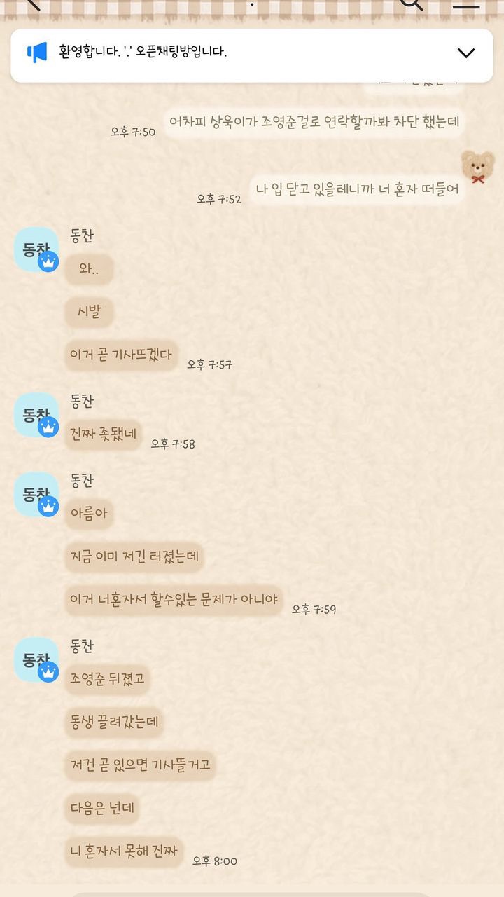 동찬인지 상욱인지 민준인지 누가 올렸는지는 모르겠는데 왜 삭제해 니네 재미볼 거 다 봤다 이거임?