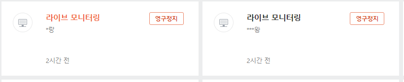 조사를 위해 임시 차단이라고 해놓고 병영에는 영구정지라고 표기해놓네요