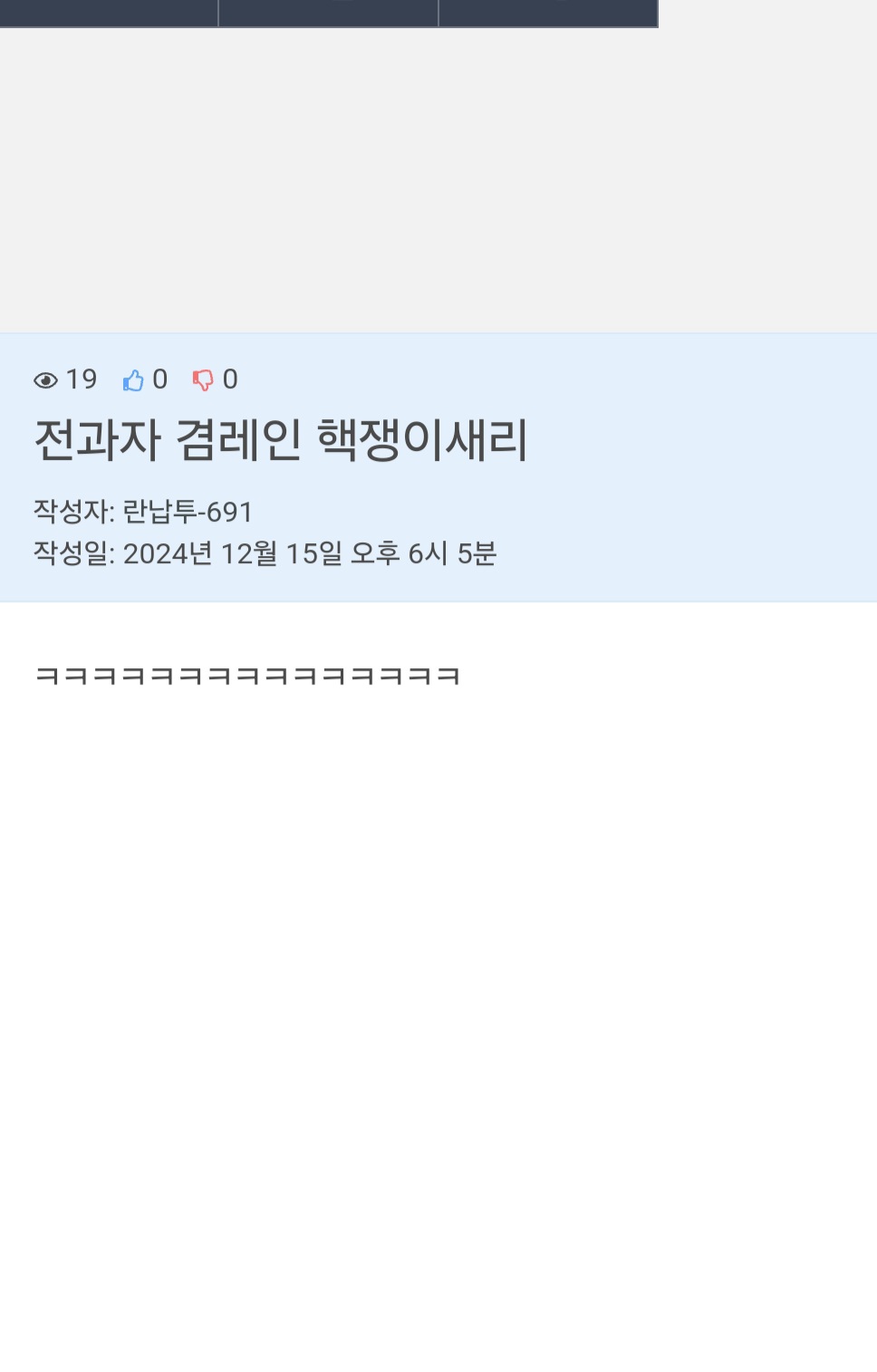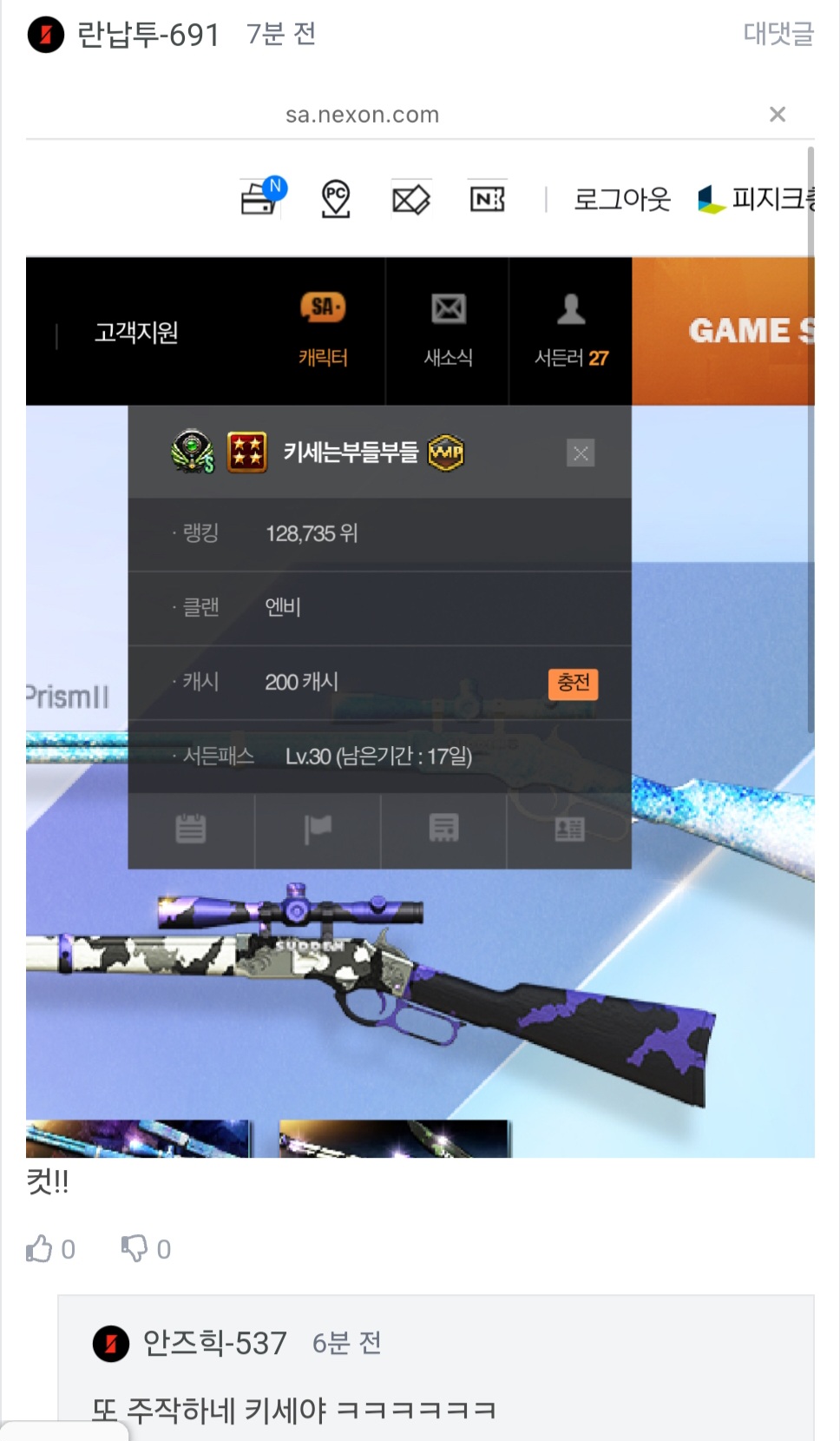 댓글 단 란납투-691을 작성자 조회 해보니까 겸레인까는글 올렸더라구요 ㅋㅋㅋ 지금 실시간 겸레인 까는거 키세입니다 ㅋㅋㅋ 병신